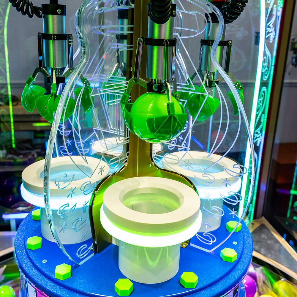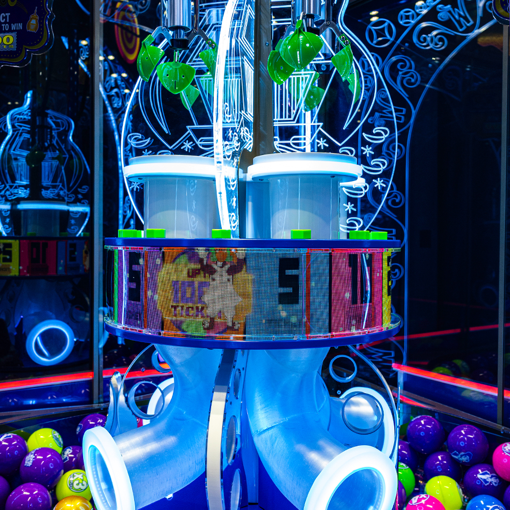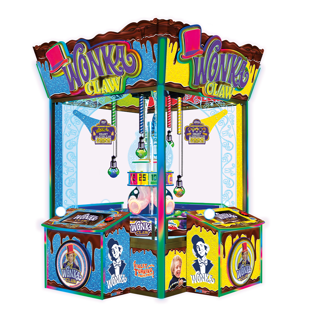 Bring the magic of Willy Wonka and the Chocolate Factory to your arcade with Wonka Claw. A fully licensed 4-player attraction packed with a vibrant design, detailed interior lighting, and true movie inspired gameplay. Players skillfully grab balls from the rotating playfield to win tickets, collect all five Wonka characters to earn lots of tickets and redeem for prizes, including the Golden Ticket, depending on the location, and collect the W-O-N-K-A letters to trigger the Wonkavator Bonus. This game delivers high replay value and non-stop excitement for players of all ages.